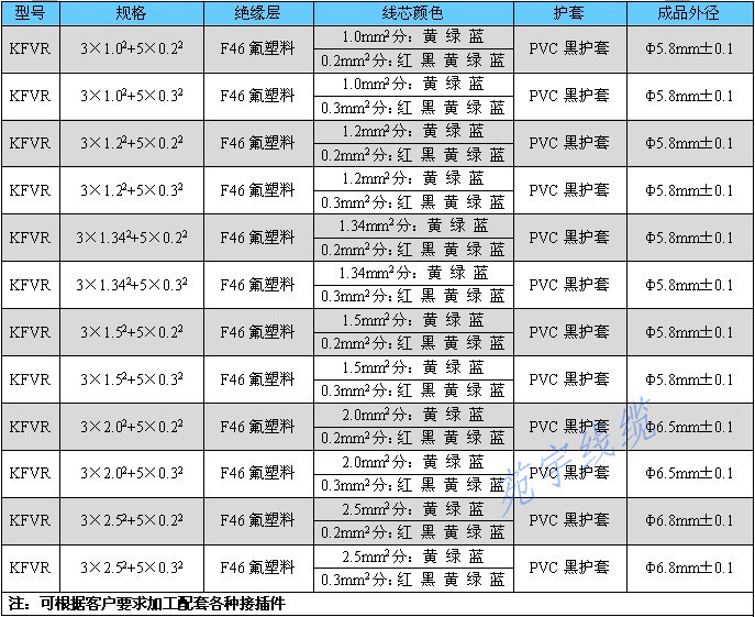 線芯顏色:2.0mm2分:黃 綠 藍(lán) 0.2mm2分:紅 黑 黃 綠 藍(lán)